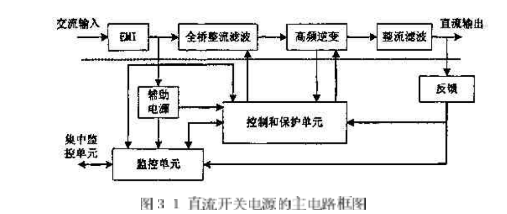 根據(jù)需求規(guī)劃大功率開關電源的技術要求,本文進行了方案的驗證與比較,規(guī)劃如圖 3-1所示的軟開關直流開關電源的主電路框圖。虛線以上是主電路,主電路首要分為輸入整流濾波、逆變開關電路、逆變變壓器和輸出整流濾波;虛線以下為控制回路,控制回路首要包括信息檢測電路、控制和維護單元、監(jiān)控單元和輔助電源。