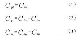 帶外接電容C2的N型MOS管極間電容等效電路MOS管的極間電容柵漏電容Cgd、柵源電容Cgs、漏源電容Cds可以由公式確定,公式中MOS管的反饋電容Crss,輸入電容Ciss和輸出電容Coss的數(shù)值在MOS管的產(chǎn)品技術(shù)手冊上可以查到。公式如下: