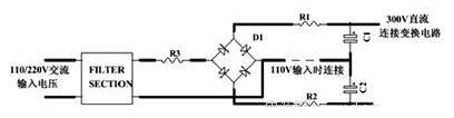 上圖所示為串聯電阻法沖擊電流控制電路(適用于橋式整流和倍壓電路,其沖擊電流相同),對于110V220V雙電壓輸入電路,應該在R1R2位置放兩個電阻,這樣在110V輸入連接線連接時和220V輸入連接線斷開時的沖擊電流一樣大。對于單輸入電壓電路,應該在R3位置放電阻。