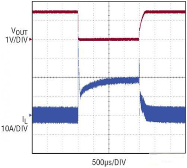 LTC3866 的另一個獨特之處是短路軟恢復。內部軟恢復電路保證,當電源從短路情況恢復時沒有過沖 (如圖 6 所示)。