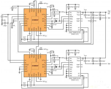 LTC3866 采用恒定頻率峰值電流模式控制架構,從而可確保逐周期峰值電流限制和不同電源之間的均流。