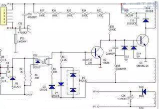 1、先用電阻測量法測量開關管Q1有無擊穿短路現(xiàn)象,電流取樣電阻R4有無開路。電路易損壞元件為開關管,當其損壞后,R4因受沖擊而阻值變大或斷路。Q1的G極串聯(lián)電阻、振蕩芯片PC1往往受強電沖擊而損壞,須同時更換;檢查負載回路有無短路現(xiàn)象,排除。