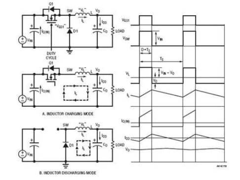 其間TON是開關電源周期TS內的導通時刻間隔。假定TON/TS之比界說為占空比D,則輸出電壓VO為: