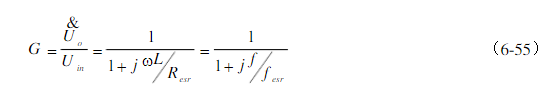 濾波電容有ESR的LC濾波器幅頻特性如圖6.35b的曲線123456。大多數濾波電容具有ESR。在f0以上的低頻段,容抗遠遠大于ESR,從Uo看到阻抗僅是容抗起主要效果,斜率仍為-40dB/dec;在更