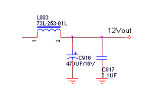 因?yàn)檩敵?/span>干擾的頻譜相當(dāng)豐富,從幾十赫茲到幾十兆赫茲均含分量。因?yàn)樵诟哳l的情況下,濾波電容等效由純電容(C)、等效串聯(lián)電阻(RES)和等效串聯(lián)電感(LES)構(gòu)成的串聯(lián)電路。在作業(yè)頻率f超過電容器的自諧振頻率fr時(shí),電容器就起到電感的作用。值大的濾波電容對低頻干擾比較敏感,相反,值小的濾波電容吸收高頻干擾的作用比較好。因此不能光采用大電解電容濾波C916,還有必要加接自諧振頻率很高的陶瓷電容器C917。