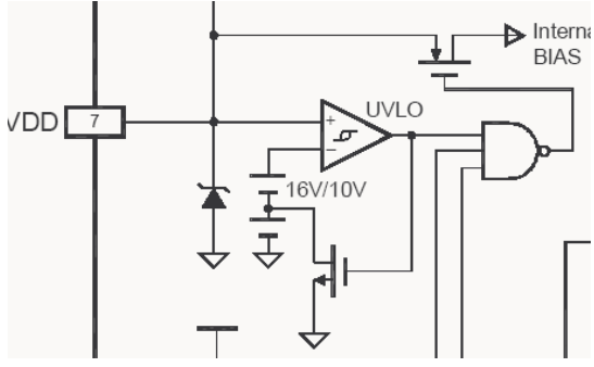 Gate:PWM脈沖輸出端。圖騰柱(即推拉輸出電路)輸出極驅(qū)動功率開關(guān)管。