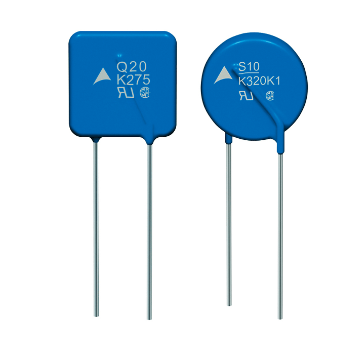 4.壓敏電阻器(VSR)-工作電壓范圍寬(6V~3000V,分若干檔),對過電壓脈沖響應速度快(幾納秒至幾十納秒),耐沖擊電流的能力很強(可達100A~20Ka),漏電流小(低于幾微安至幾十微安),電阻溫度系數低(小于0.05%/℃),價格低廉。