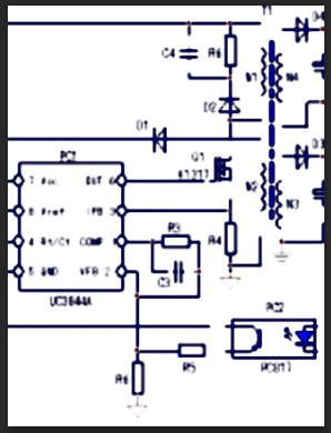b、對UC3844獨自上電,短接PC2輸入側(cè),若電路起振,闡明毛病在PC2輸入側(cè)外圍電路;電路仍不起振,查PC2輸出側(cè)電路。