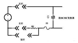 長短針法沖擊電流管制電路如上圖所示:在DC-DC電源板刺進時,長針觸摸,輸入電容C1通過電阻R1充電,當電源板完全刺進時,電阻R1被斷針短路。C1代表DC-DC電源的一切電容量。