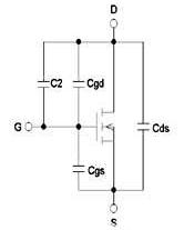 帶外接電容C2的N型MOS管極間電容等效電路MOS管的極間電容柵漏電容Cgd、柵源電容Cgs、漏源電容Cds可以由公式確定,公式中MOS管的反應電容Crss,輸入電容Ciss和輸出電容Coss的數值在MOS管的產品技術手冊上可以查到。公式如下: