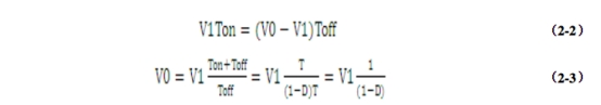 現(xiàn)在來講講開關(guān)電源的電路作業(yè)原理:Boost電路即升壓電路,當(dāng)Q1導(dǎo)通時,能量從輸入電源流入儲存于電感L1中,此刻二極管D1反偏,負載由濾波電容C1供給能量,將C1中儲存的電能(C1V02/2)釋放給負載R1。當(dāng)Q1截止時,電感L1中電流不能突變,此刻二極管D1導(dǎo)通,電感中儲存的能量(L1I2/2)經(jīng)二極管D1,流入電容C1,并供給負載R1。依據(jù)電感的伏秒平衡,在一個周期內(nèi)電感的伏秒乘積和為零。假如Q1導(dǎo)通時刻Ton越大,那么Q1截止時供給給負載的電壓就會越大。下面通過具體的計算來加深了解:依據(jù)伏秒平衡有式(2-2)、(2-3)。