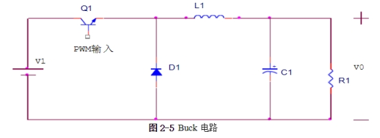 由(2-5)式可知,通過改動開關(guān)管的占空比能夠操控輸出平均電壓的巨細。由于占空比總是小于1,所以V0總是小于V1,所以說Buck電路是降壓電路。