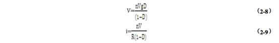 現(xiàn)在來剖析它的作業(yè)原理:當(dāng)Q導(dǎo)通時,二極管截止,依據(jù)電路知識可知此刻VL=Vg,ic=-V/R;當(dāng)Q截止時,二極管D導(dǎo)通,VL=-V/n,ic=i/n-V/R。由伏秒平衡和電容充放電平衡可得: