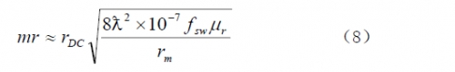 電阻損耗是變壓器或電感內(nèi)部繞組的電阻產(chǎn)生的損耗。有兩種方式的電阻損耗:直流電阻損耗和集膚效應(yīng)電阻損耗。直流電阻損耗由繞組導(dǎo)線的電阻與流過的電流有效值二次方的乘積所決議。集膚效應(yīng)是因為在導(dǎo)線內(nèi)強溝通電磁場效果下,導(dǎo)線中心的電流被“推向”導(dǎo)線表面而使導(dǎo)線的電阻實踐添加所造成的,電流在更小的截面中活動使導(dǎo)線的有效直徑顯得小了。式(8)給出了這兩個損耗在一個表達(dá)式中的計算式。