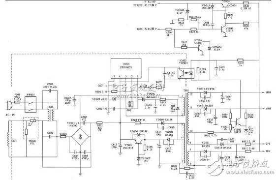 2、穩(wěn)壓回路:開(kāi)關(guān)變壓器的N3繞組、D6、C13、C14等元件組成的24V電源,基準(zhǔn)電壓源TL1、光耦合器U2等元件構(gòu)成了穩(wěn)壓控制回路。