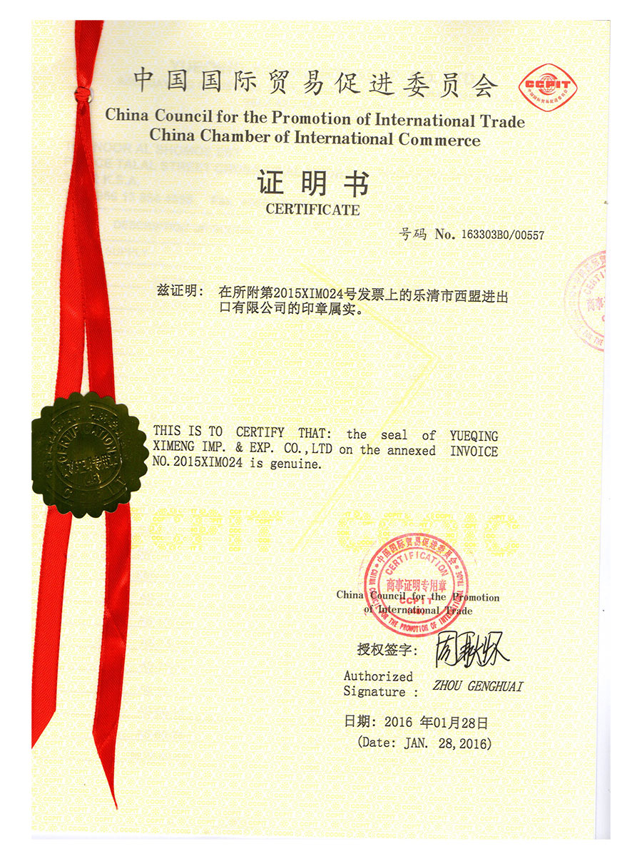 中國國際貿易促進委員會證書2