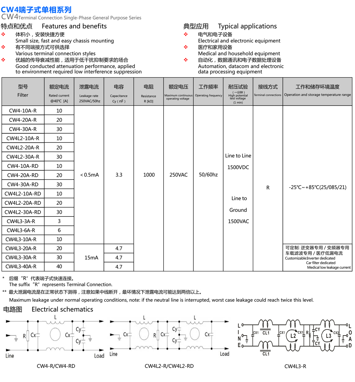 當前位置:主頁 > 產品展示 > 電源濾波器系列 > CW4端子式單相系列